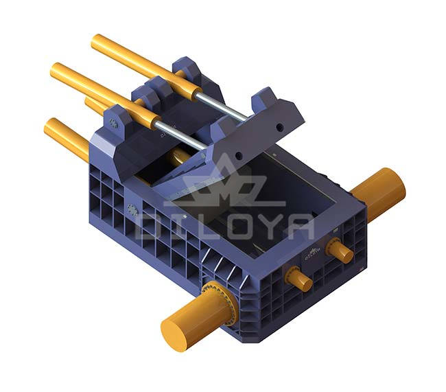 Working Principle: The metal scrap is put into the box chamber by grabber or other tools, then the lid of the baler machine is closed, and the side cylinder press the scrap metal to the limit of the side cylinder, then the main cylinder start to press the scrap to limit of the non-ferrous metal baling press machine, then the open the lid, and use grabber to grab the bale out, at last, every cylinder back to initial position, the bale cycle is finished totally.