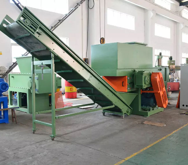 Working Principle: The plastic pipes is put int the shredder machine by people or conveyor, then the pushing cylinder push the plastic lumps to the rotor, then the rotor with high speed to cut the plastic scraps into small size flakes, and the flakes size can be adjustable by changing screen under the shredder machine.
