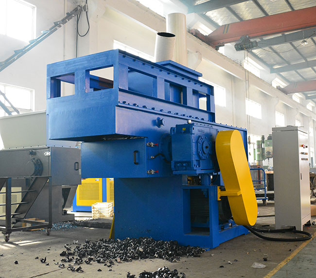 Working Principle: The plastic pipes is put int the shredder machine by people or conveyor, then the pushing cylinder push the plastic lumps to the rotor, then the rotor with high speed to cut the plastic scraps into small size flakes, and the flakes size can be adjustable by changing screen under the shredder machine.